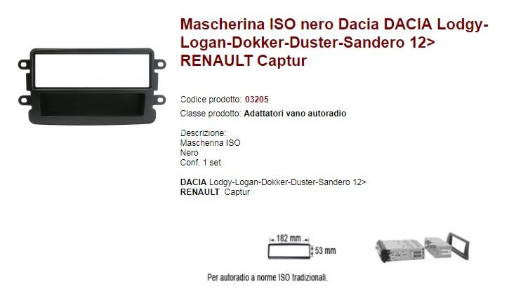 MASCHERINA AUTORADIO DACIA-RENAULT CAPTUR NERA ISO