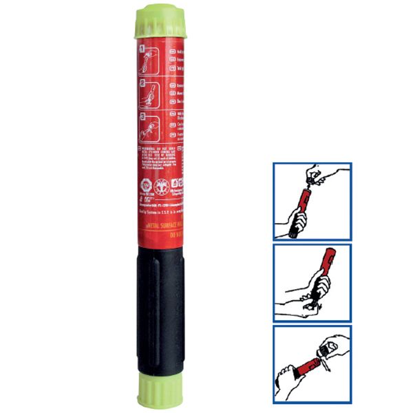 Cod. 600120025Dispositivo estinguente ad aerosol per tutti i tipi di incendio. Piccolo e leggero.Sicuro perchè non sotto pressione, non lascia residui. Non necessita di ricariche e di manutenzione e non ha scadenza. Brevettato - Uso Domestico
