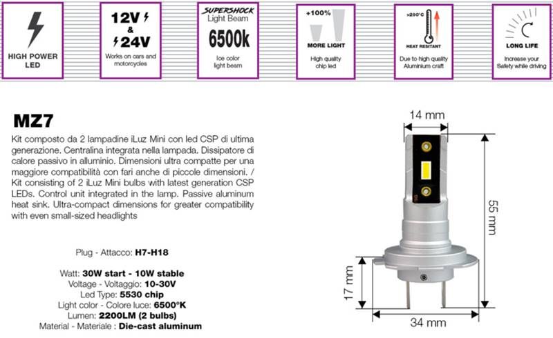 Kit 2 lampade H7 LED 6500K iLuz Mini