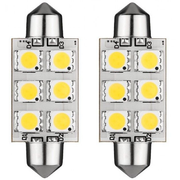 COPPIA LAMPADE SILURO 10x36 mm con resisistenza integrata ULTRA BIANCA 6 LED