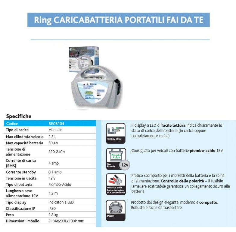 RING CARICABATTERIA PORTATILE 4 Amp